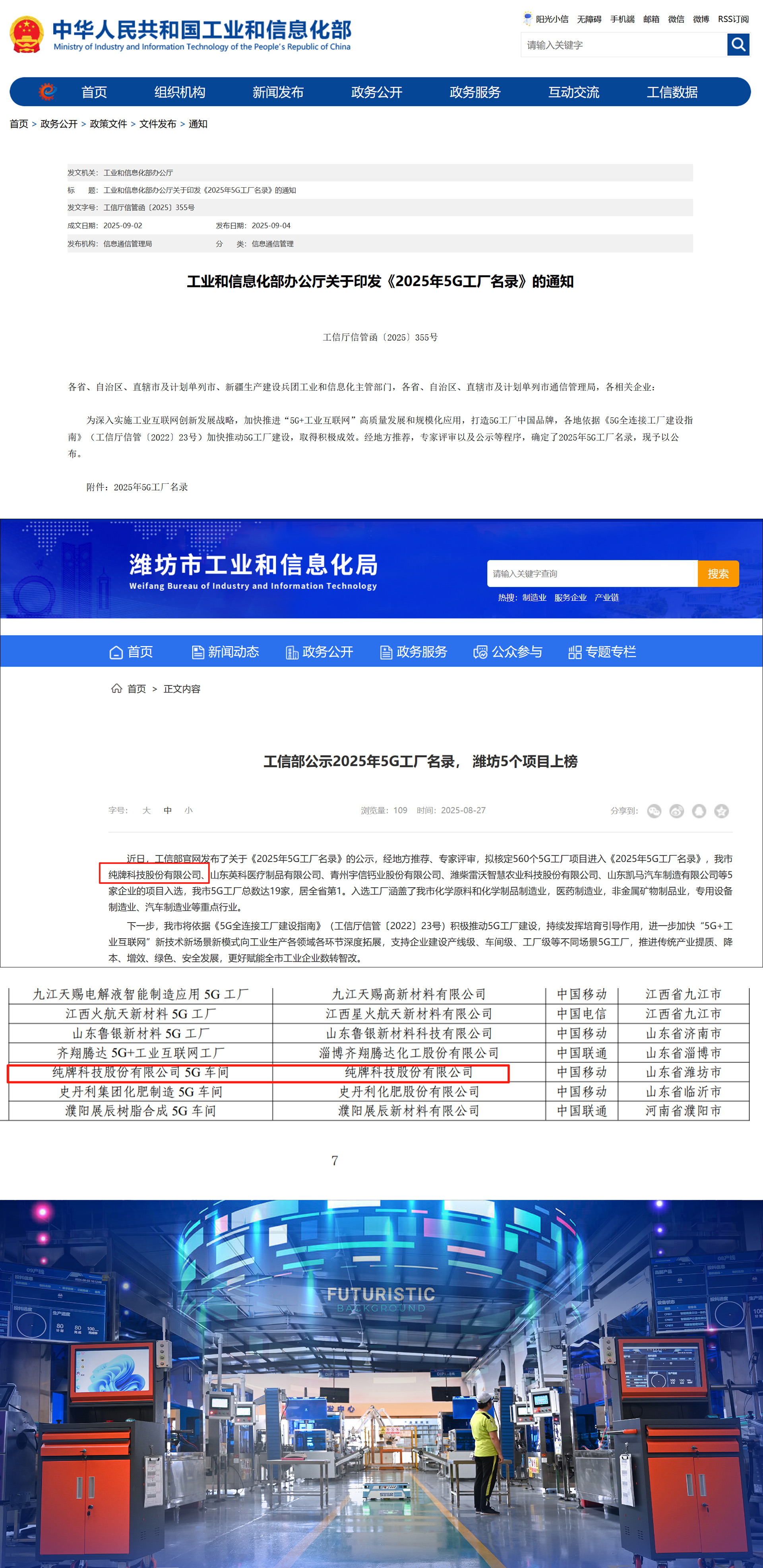 纯牌科技股份有限公司入选工信部5G工厂